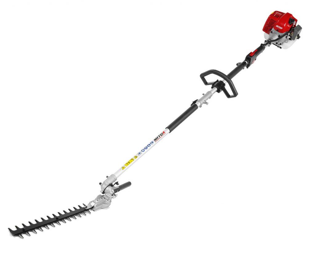 The Mitox 26LH-SP is a long reach hedgecutter designed for accessing difficult to reach areas or the top of hedges with its adjustable head that can move up to 150 degrees. The blades on the 26LH are 40cm in length, perfect for smaller gardens. It features a 25cc 2 stroke engine, standard loop handle and a shoulder strap.
